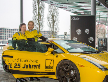 „Sichern Sie sich jetzt die Pole-Position“ – so lautet der Slogan, unter dem das gesamte Konzept realisiert wird. Zentrales Element wird das Messegewinnspiel, bei dem ein Wochenende im Supersportwagen gewonnen werden kann. Dieses Motiv bildet den Aufhänger für Messeeinladungen und Anzeigen in Fachmagazinen, auf die zusätzlich mit einer Banderole hingewiesen wird. Direkt vor dem Haupteingang der Münchner Messe Inhorgenta Europe steht über den gesamten Messezeitraum das Objekt der Begierde und weist Messebesucher bereits am Eingang auf das Unternehmen und das Gewinnspiel hin.
